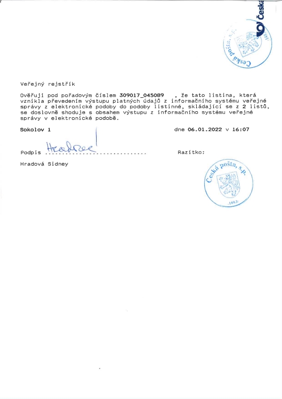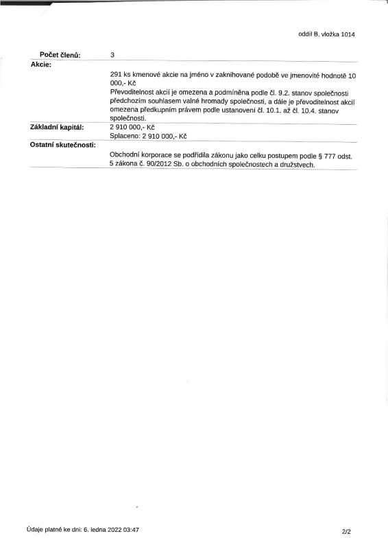 - Zapsáno ve veřejném rejstříku: B 1014 Krajský soud Plzeň